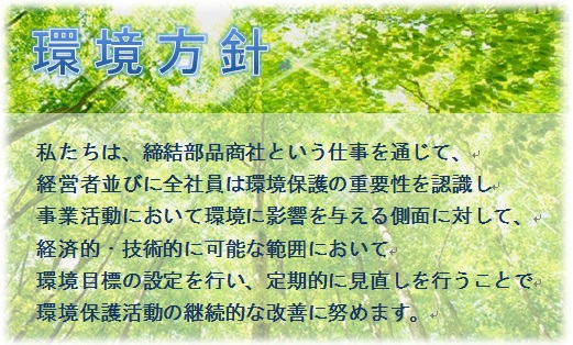 - この環境方針については、経営者並びに全社員・関係各社においても周知させると共に